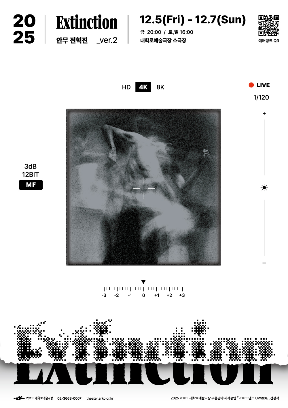 ARKO TODAY 2025.12.05 금요일 02-3668-0007 오시는 길 → 전혁진 <Extinction Ver.2>_아르코 댄스 UP:RISE 2025대학로예술극장 소극장금요일 20:00 / 토~일요일 16:00괴물도감아르코꿈밭극장금요일 19:30 / 토요일 14:00, 17:00 / 일요일 14:00극단 놀땅 <하얀 봄>- 2025년 창작산실 2차 제작지원 연극대학로예술극장 대극장화~금요일 19:30 / 토요일 15:00, 19:00 / 일요일 16:00 (월, 쉼) *11/29(토) 19:00 공연만 있음 *11/30(일) 16:00 공연 후 관객과의 대화 진행 WAKE UP!아르코예술극장 소극장금요일 19:30 / 토요일 15:00, 19:00제46회 서울무용제 - 경연대상아르코예술극장 대극장금요일, 일요일, 수요일 20:00