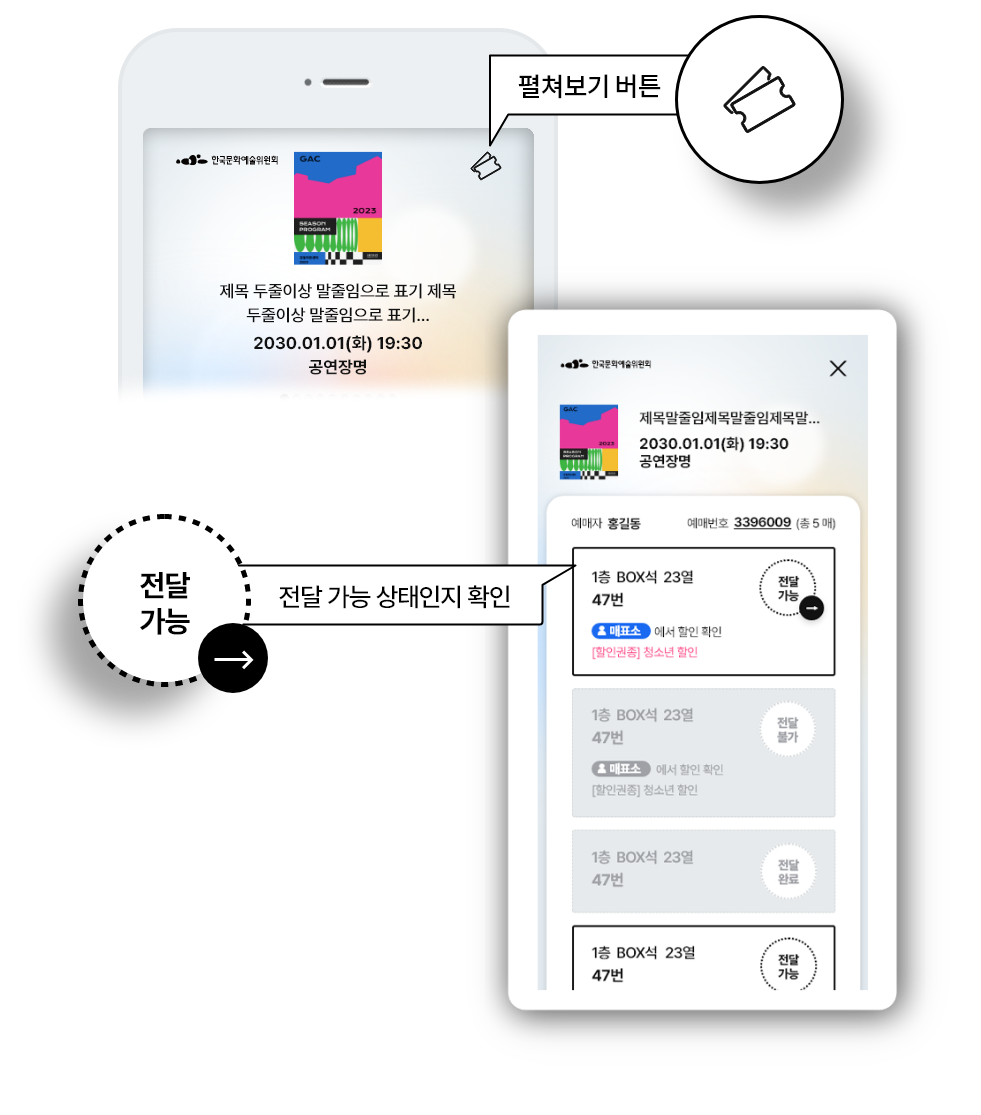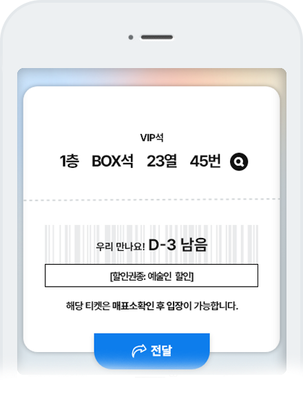 티켓을 확인 후 전달 가능을 클릭하여 전달이 가능합니다!