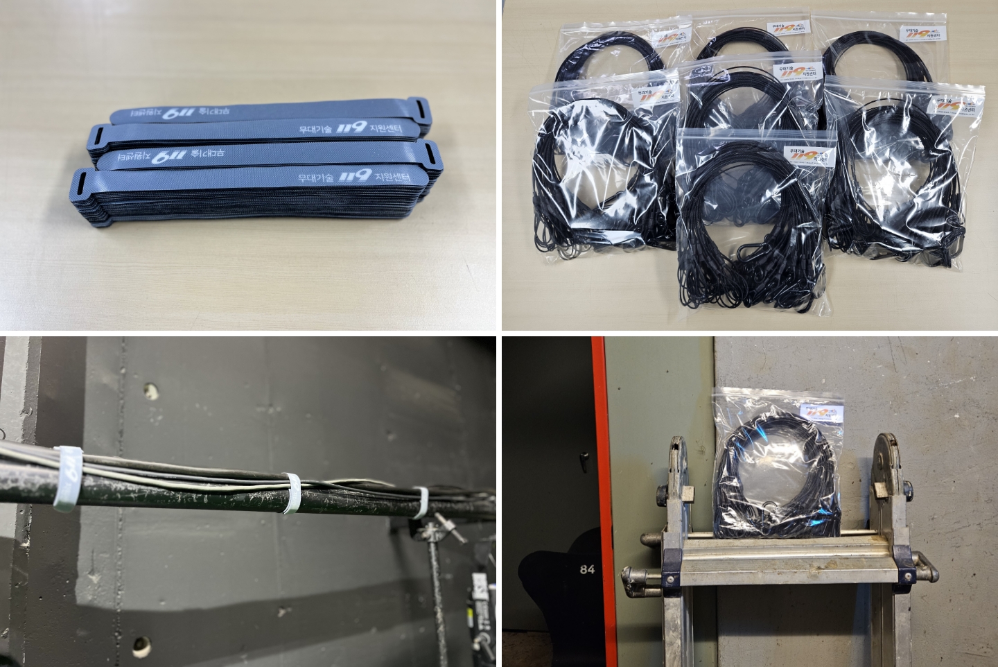 안전을 위한 작은 노력이 무대 안전사고를 예방합니다. 무대기술 119 지원센터는 무대 작업에 꼭 필요한 밸크로, 안전 고리 등을 무상 지원합니다. 대학로 소공연장의 안전한 작업환경 조성을 위해, 케이블 정리부터 장비 낙하 방지까지 필요한 안전용품을 제공하여 작업환경의 안전성을 높이는데 실질적인 도움을 줍니다. 앞으로도 다양한 안전용품을 지속적으로 지원하여 공연장 안전사고 0%를 함께 만들어 가겠습니다. 안전은 선택이 아니라 필수입니다.